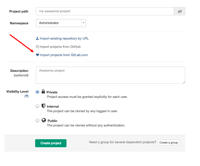 Project importing from GitLab.com to your private GitLab instance